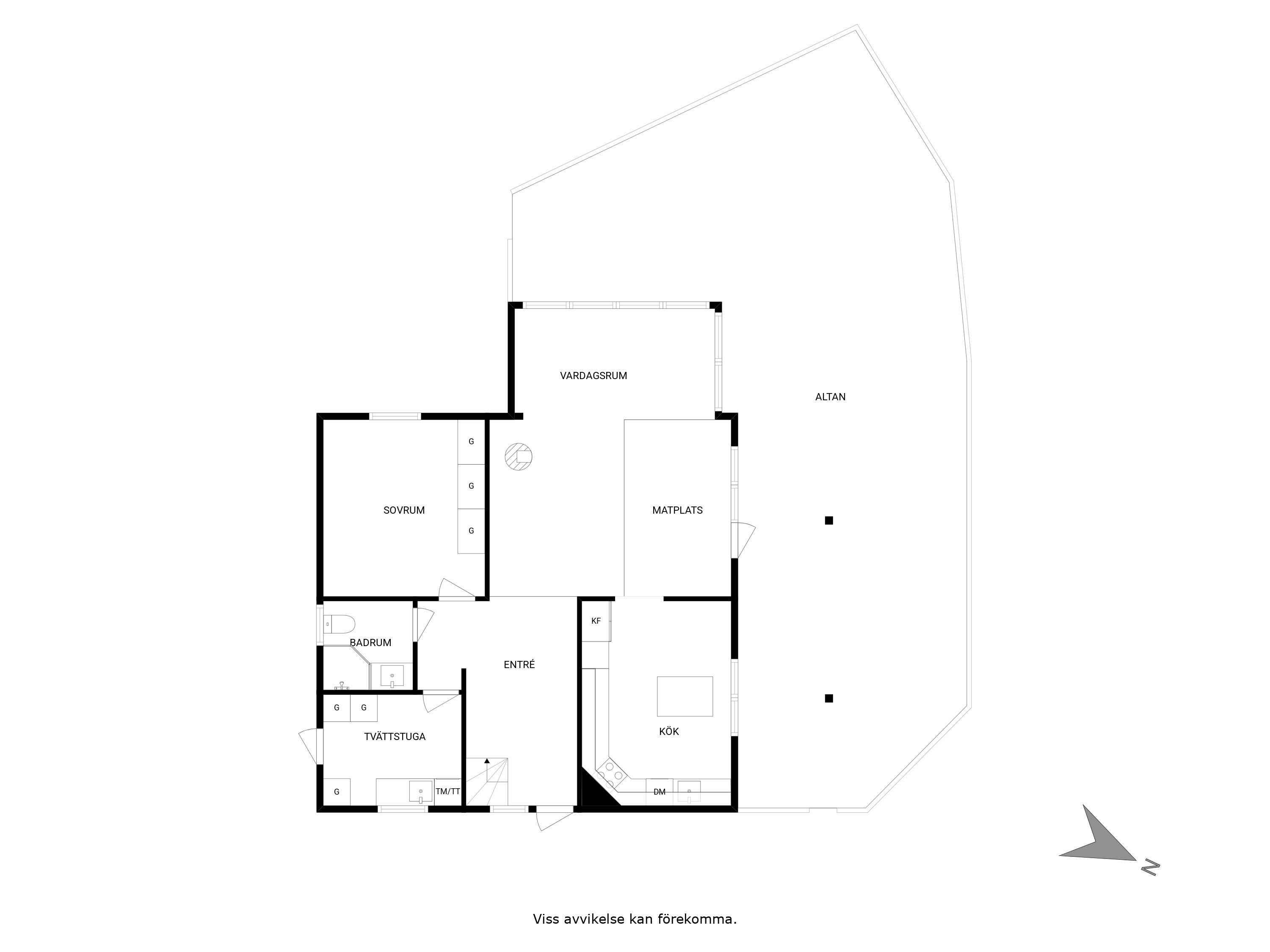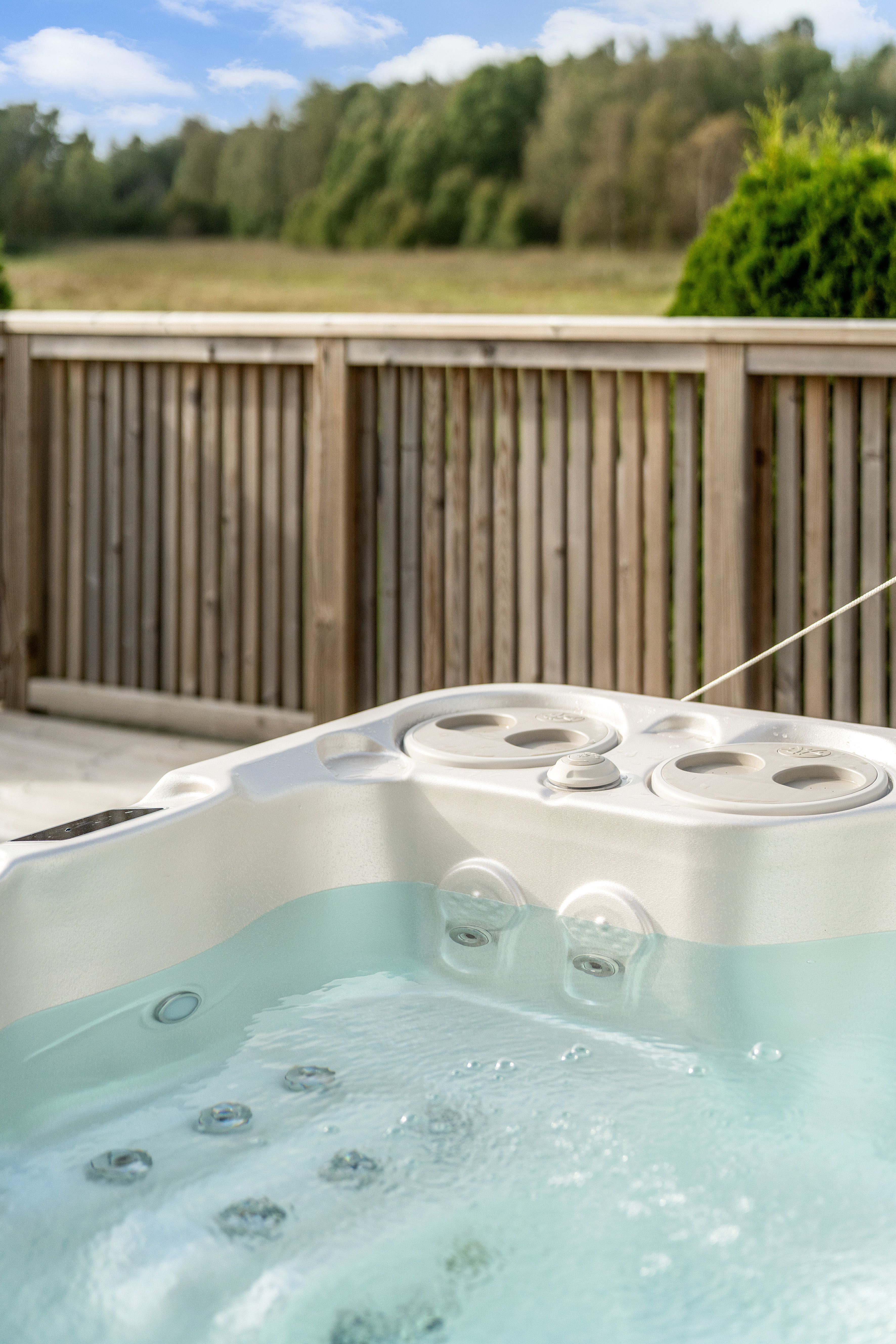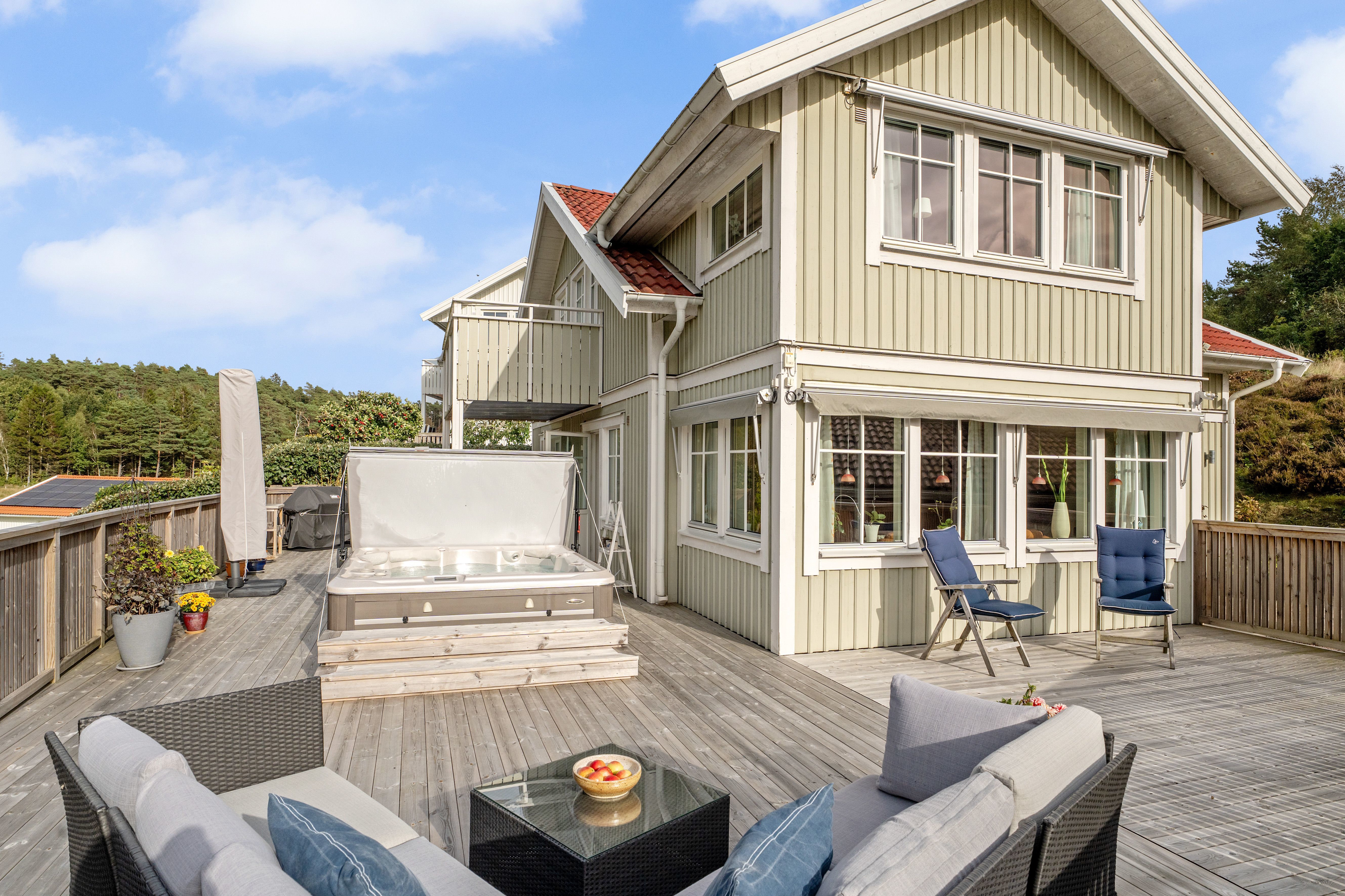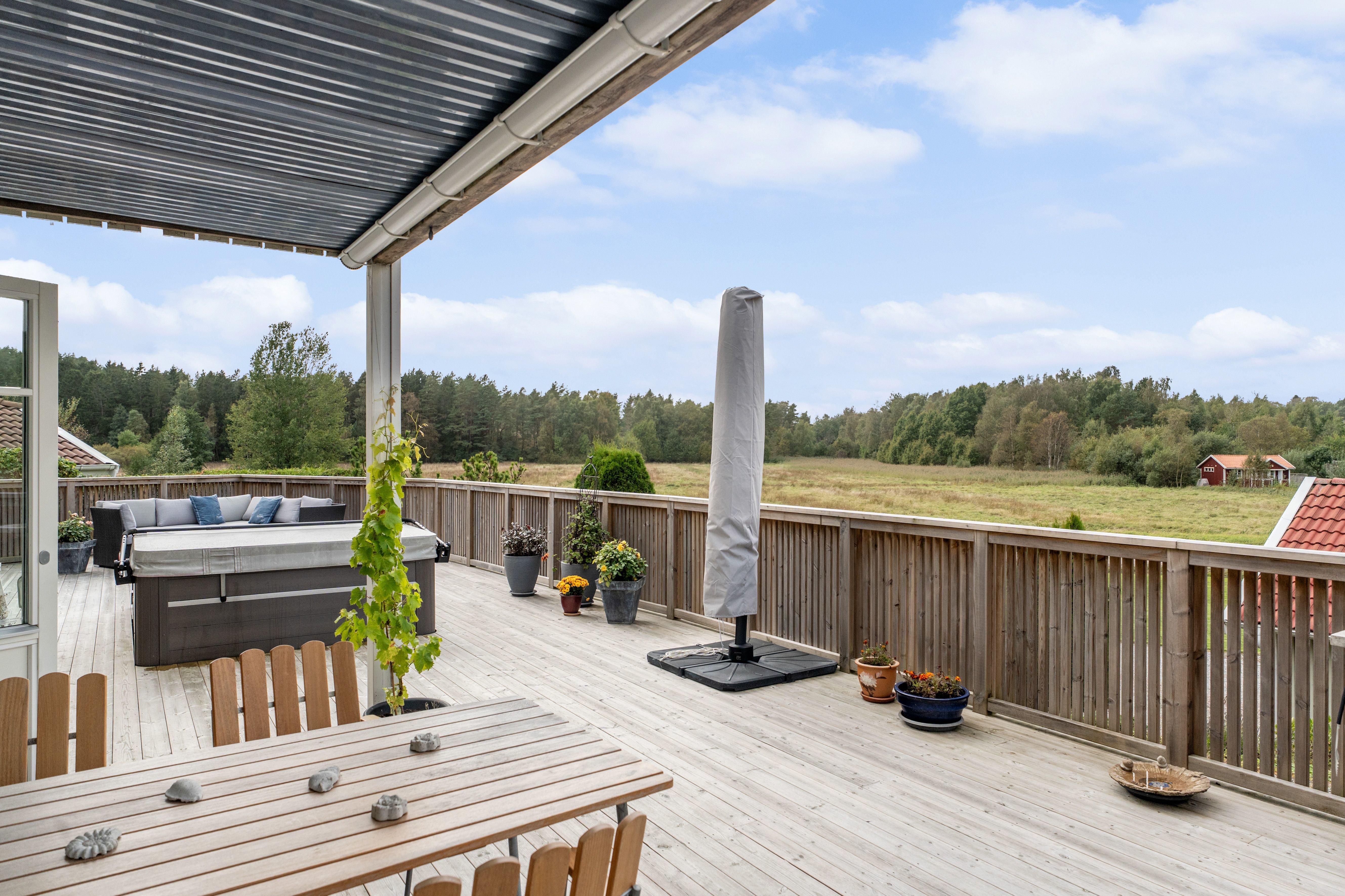 Från vardagsrummet öppnar du upp mot en stor altan i soligt läge, där kvällssolen dröjer sig kvar länge. Här finns gott om plats för loungegrupp, matbord och grill – och som kronan på verket står ett spabad som bjuder in till lyxig avkoppling året runt. Tänk dig att sjunka ner i det varma vattnet en krispig vinterkväll medan stjärnhimlen speglar sig ovanför – ren livskvalitet.