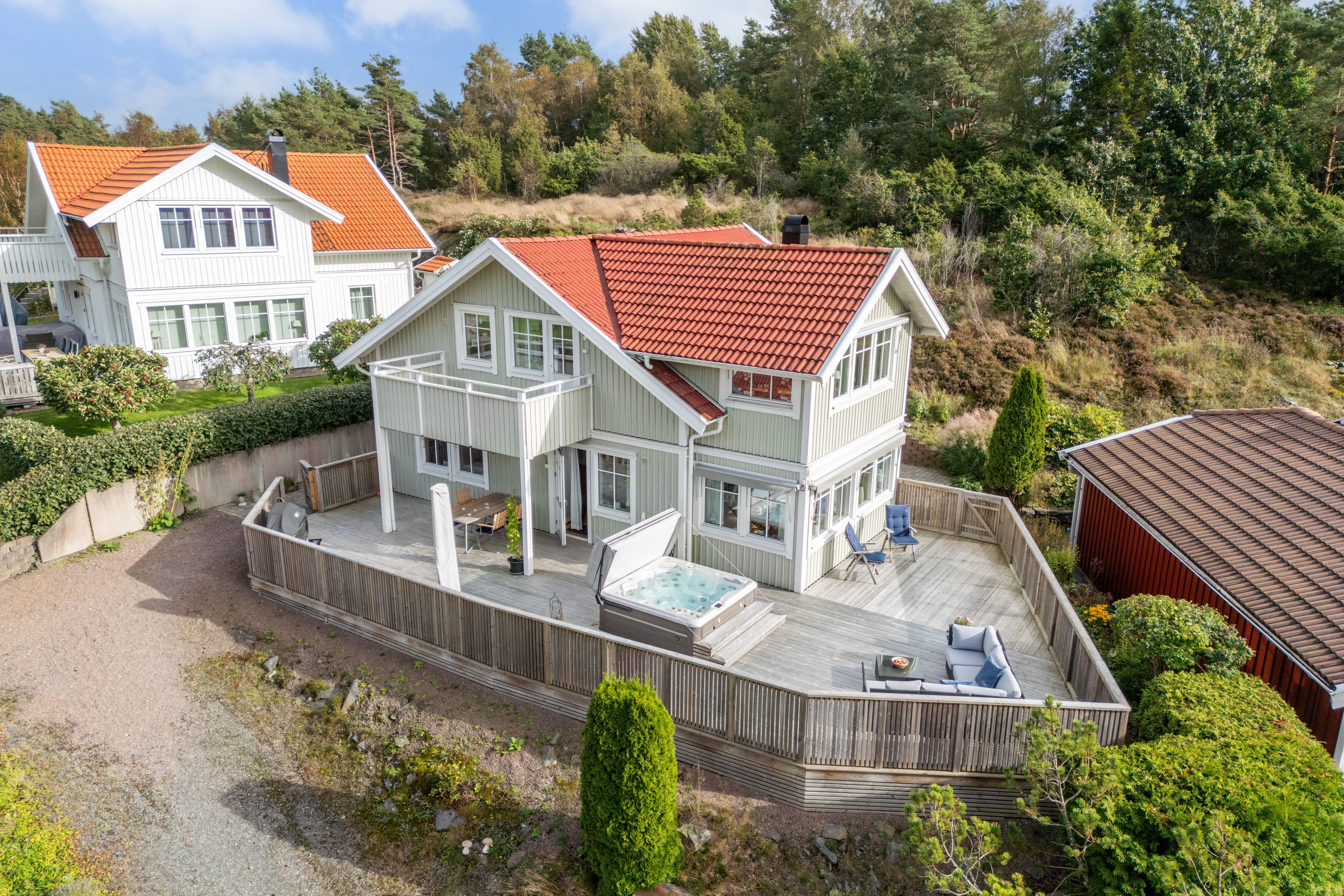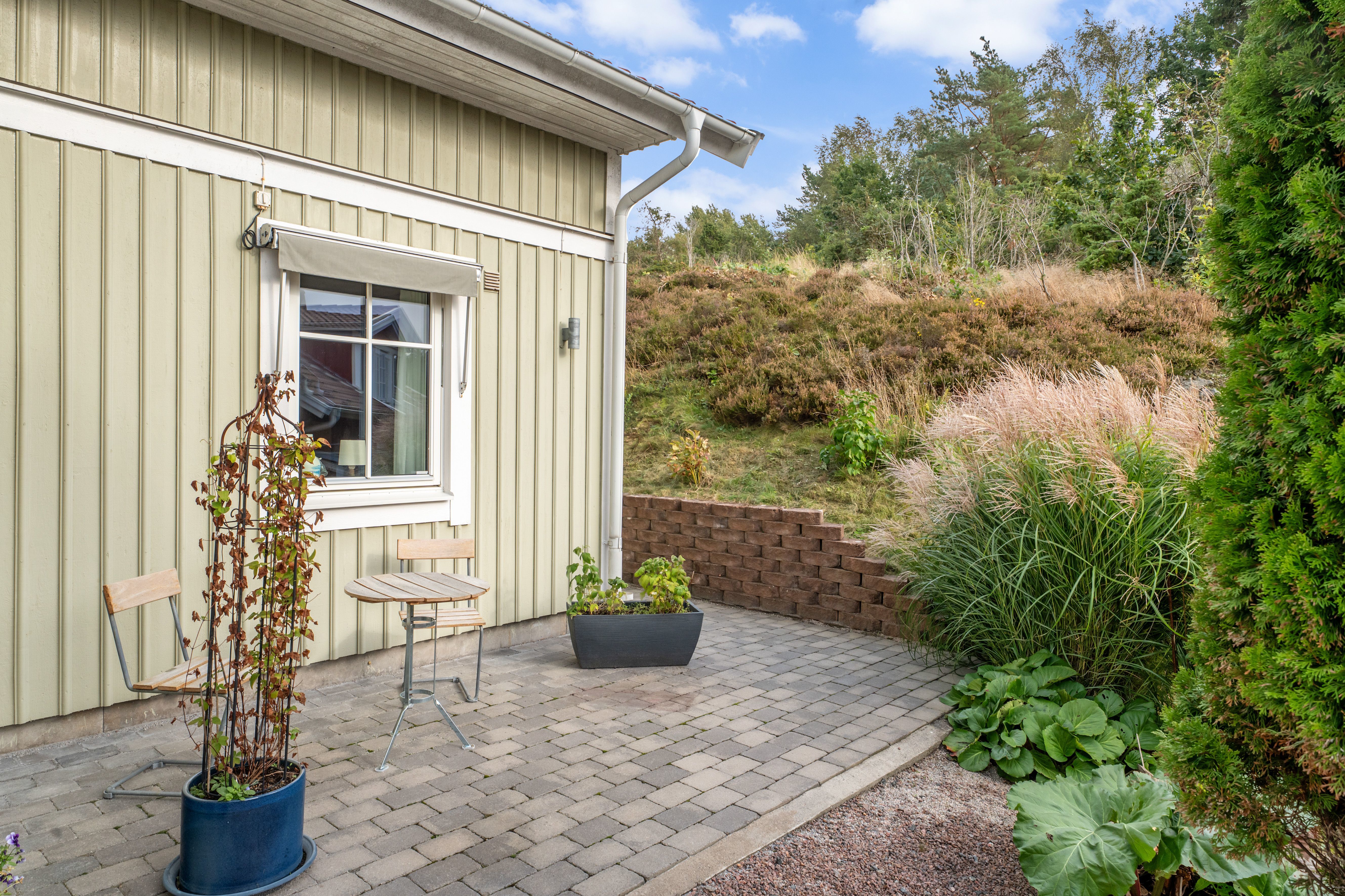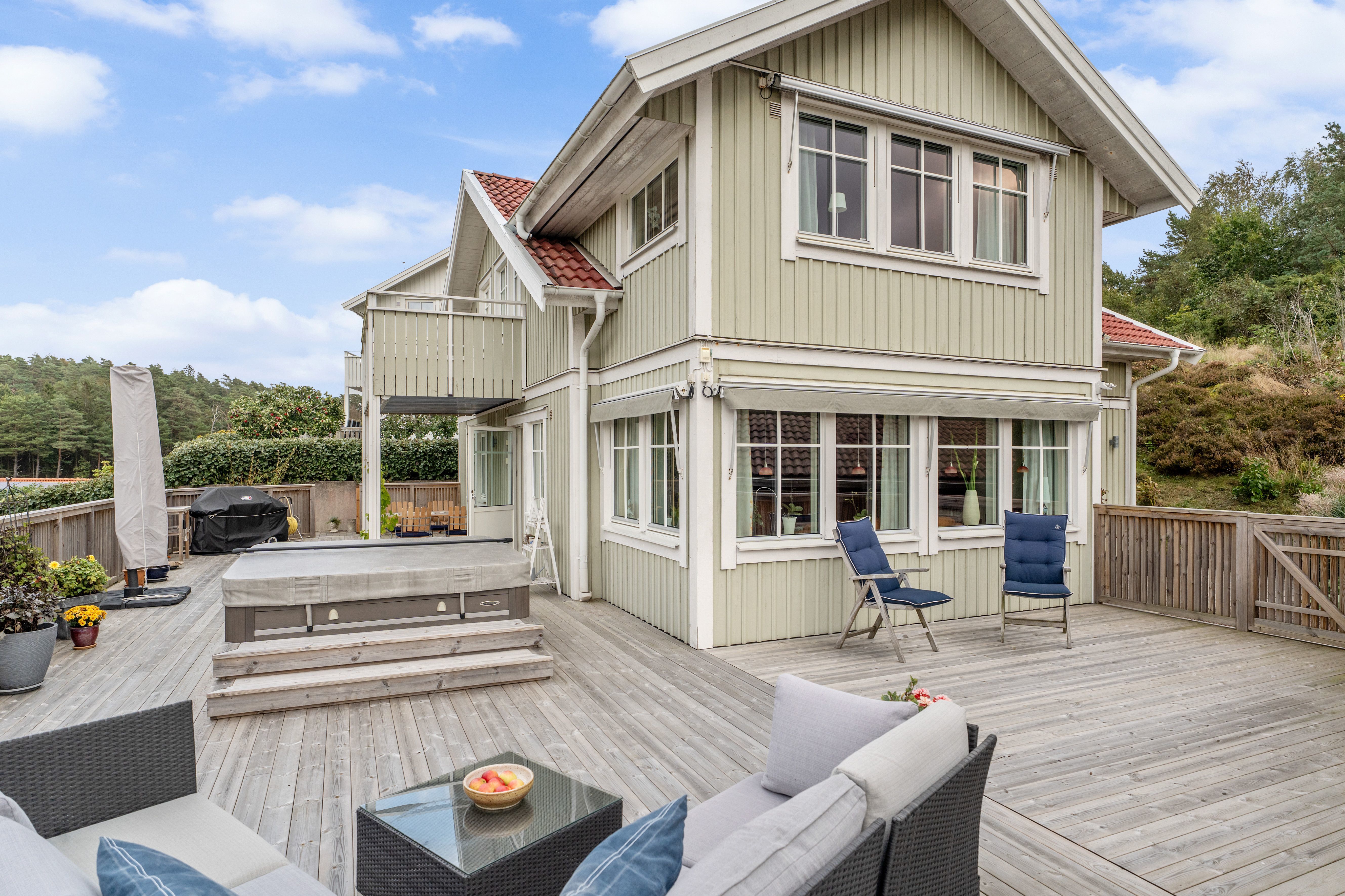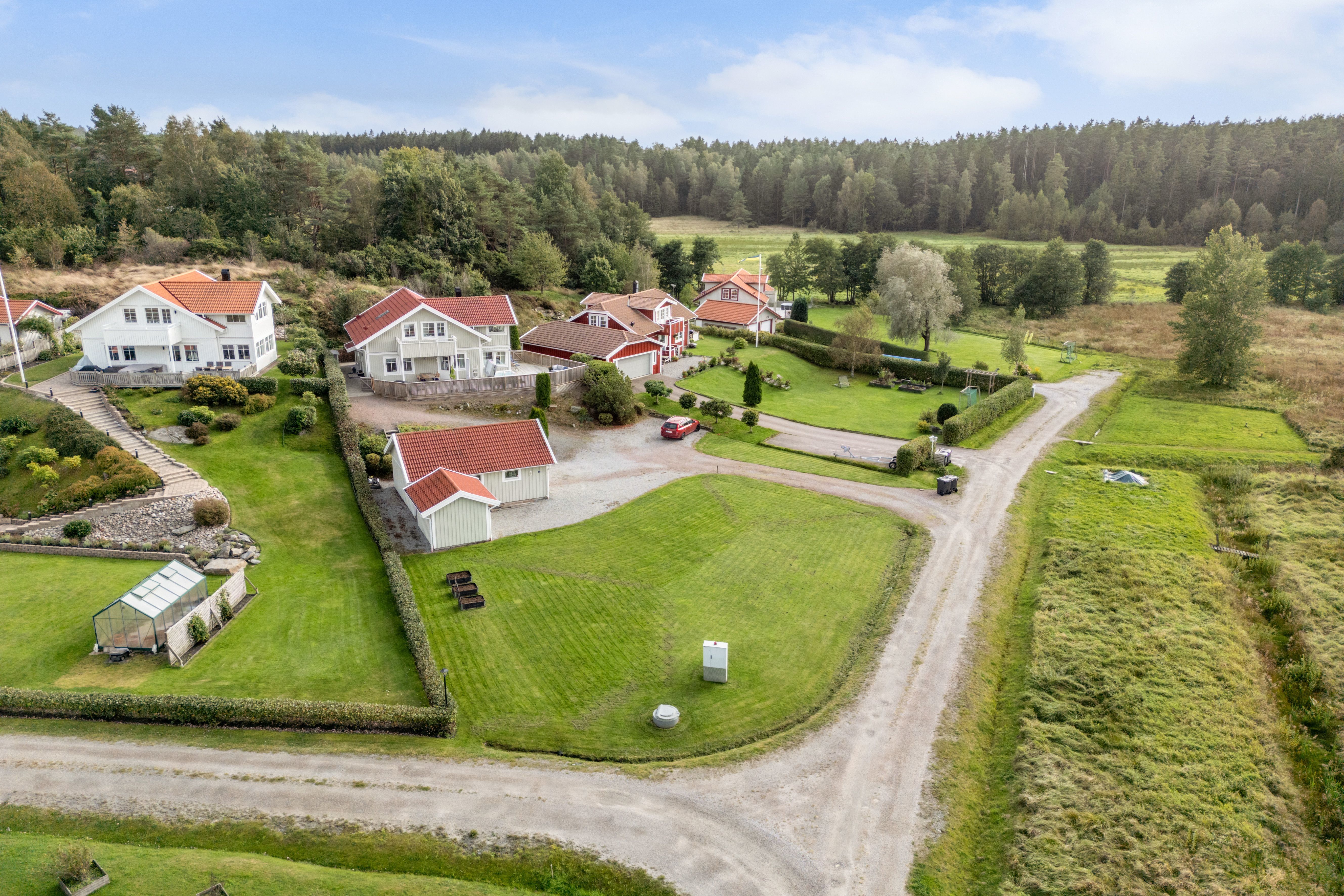Området präglas av vackra villor och trädgårdar, små slingrande vägar och en genuin bohuslänsk atmosfär. Här hälsar grannarna glatt på varandra och barnen kan cykla fritt till vänner och badplatser. Flera fina promenadstråk leder ner mot havet – perfekt för morgonens kaffepromenad eller kvällens solnedgång.
