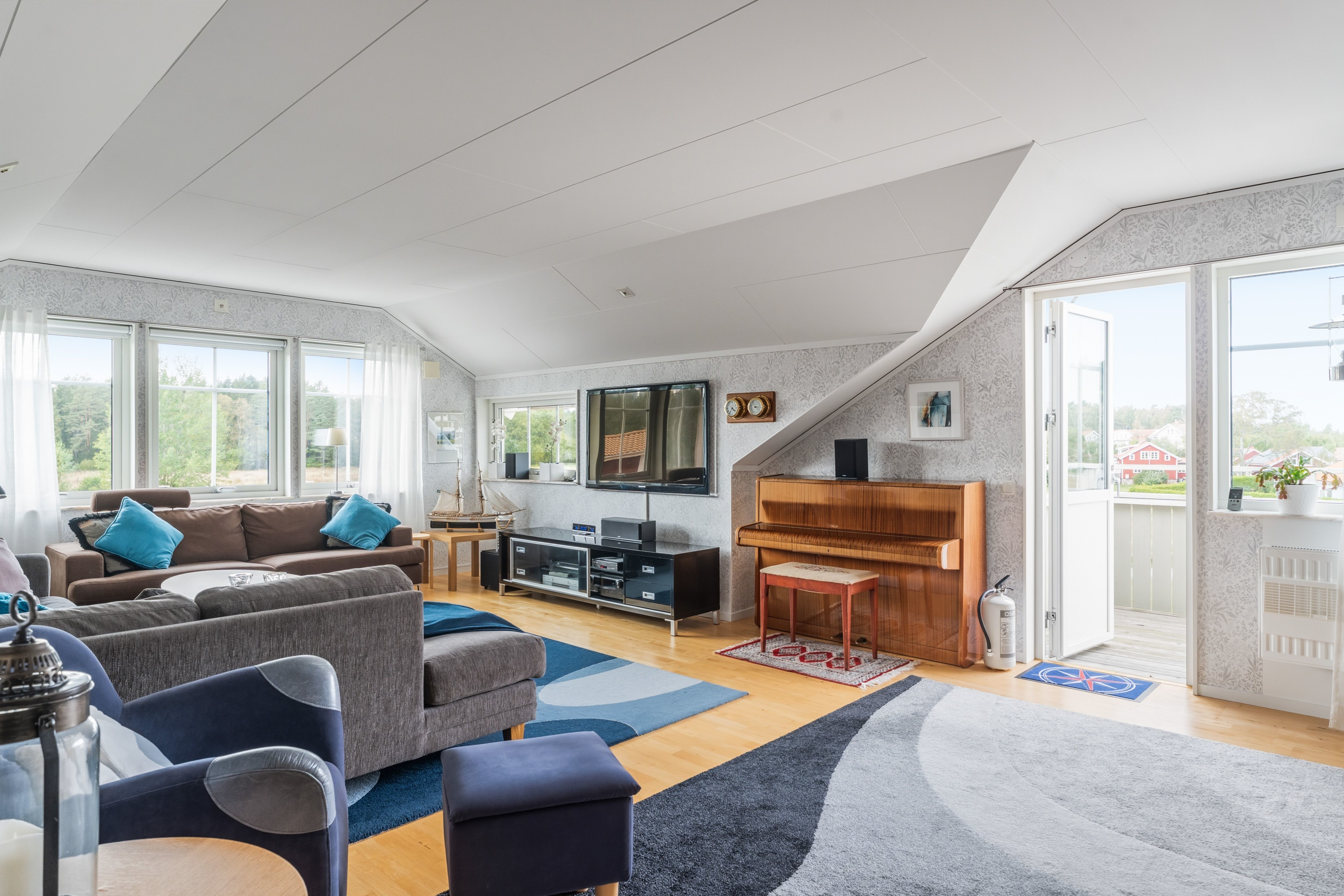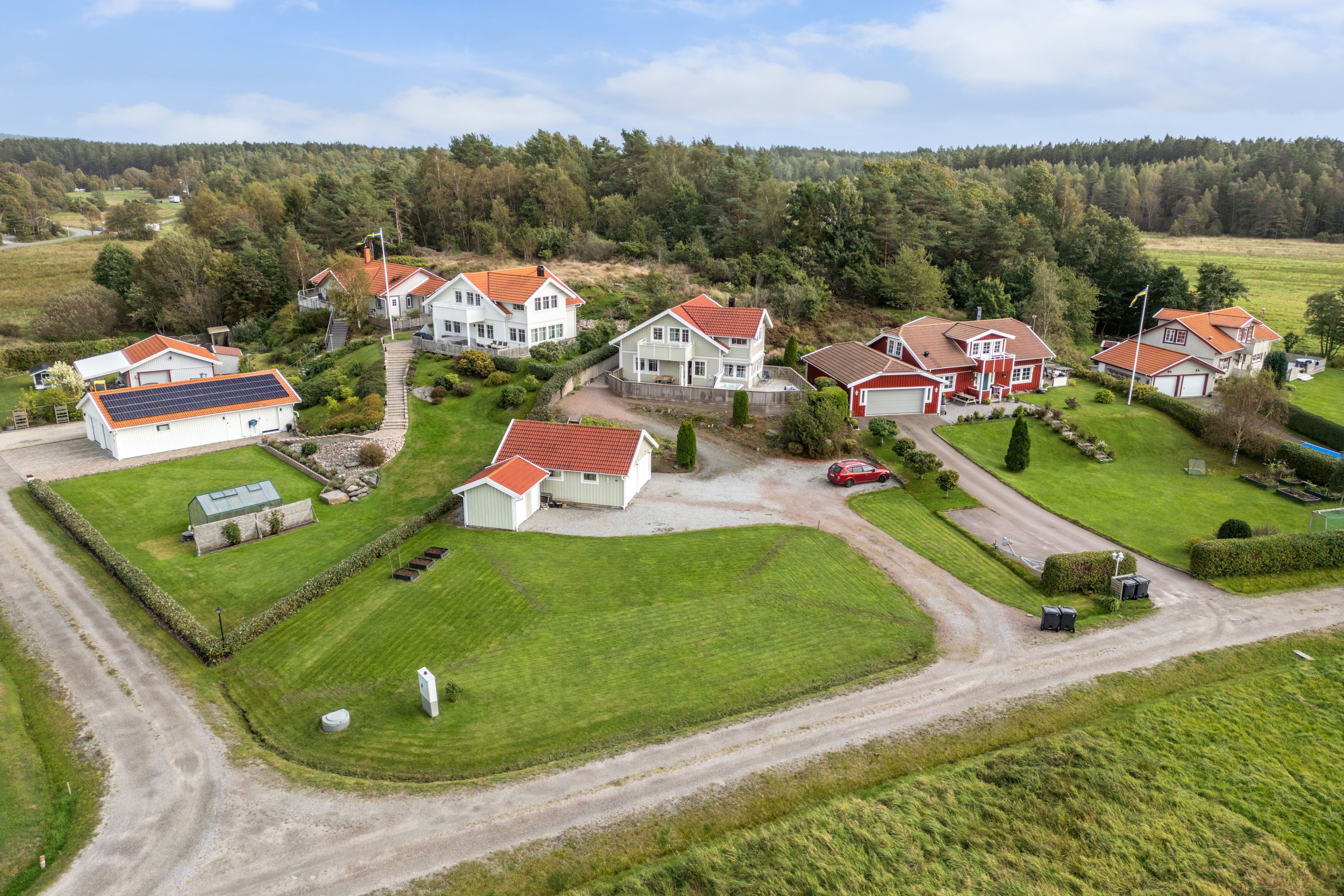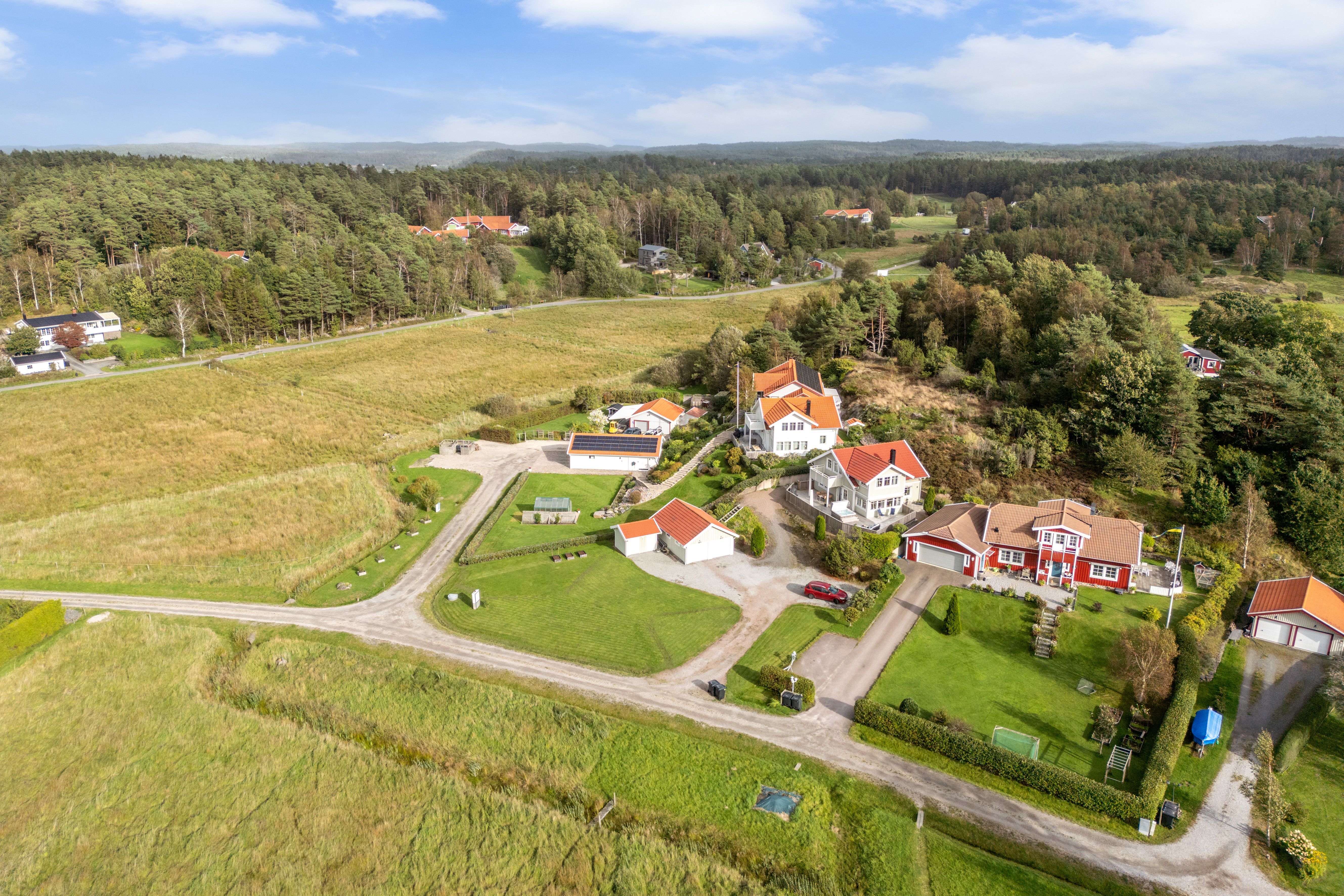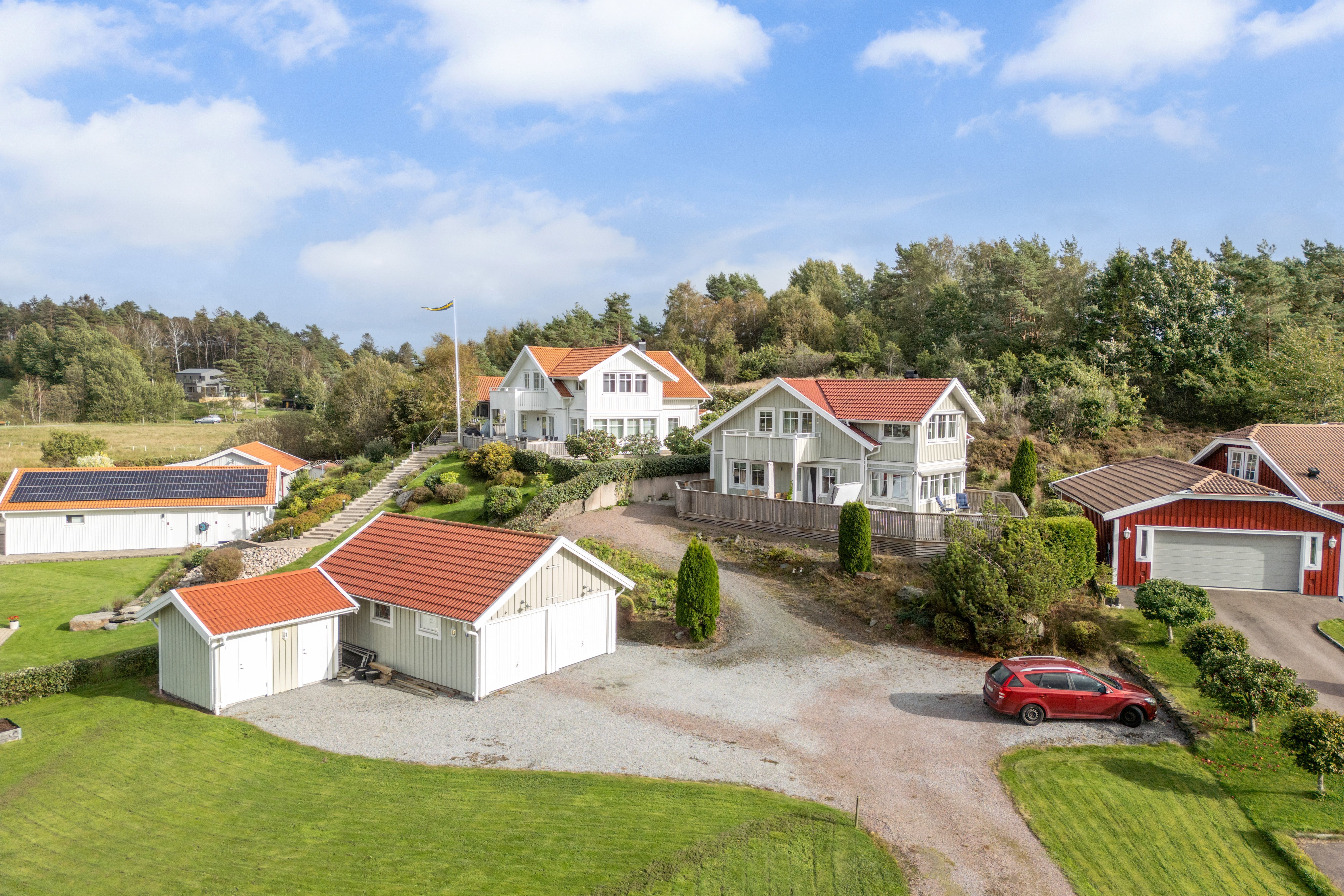 Området präglas av vackra villor och trädgårdar, små slingrande vägar och en genuin bohuslänsk atmosfär. Här hälsar grannarna glatt på varandra och barnen kan cykla fritt till vänner och badplatser. Flera fina promenadstråk leder ner mot havet – perfekt för morgonens kaffepromenad eller kvällens solnedgång.